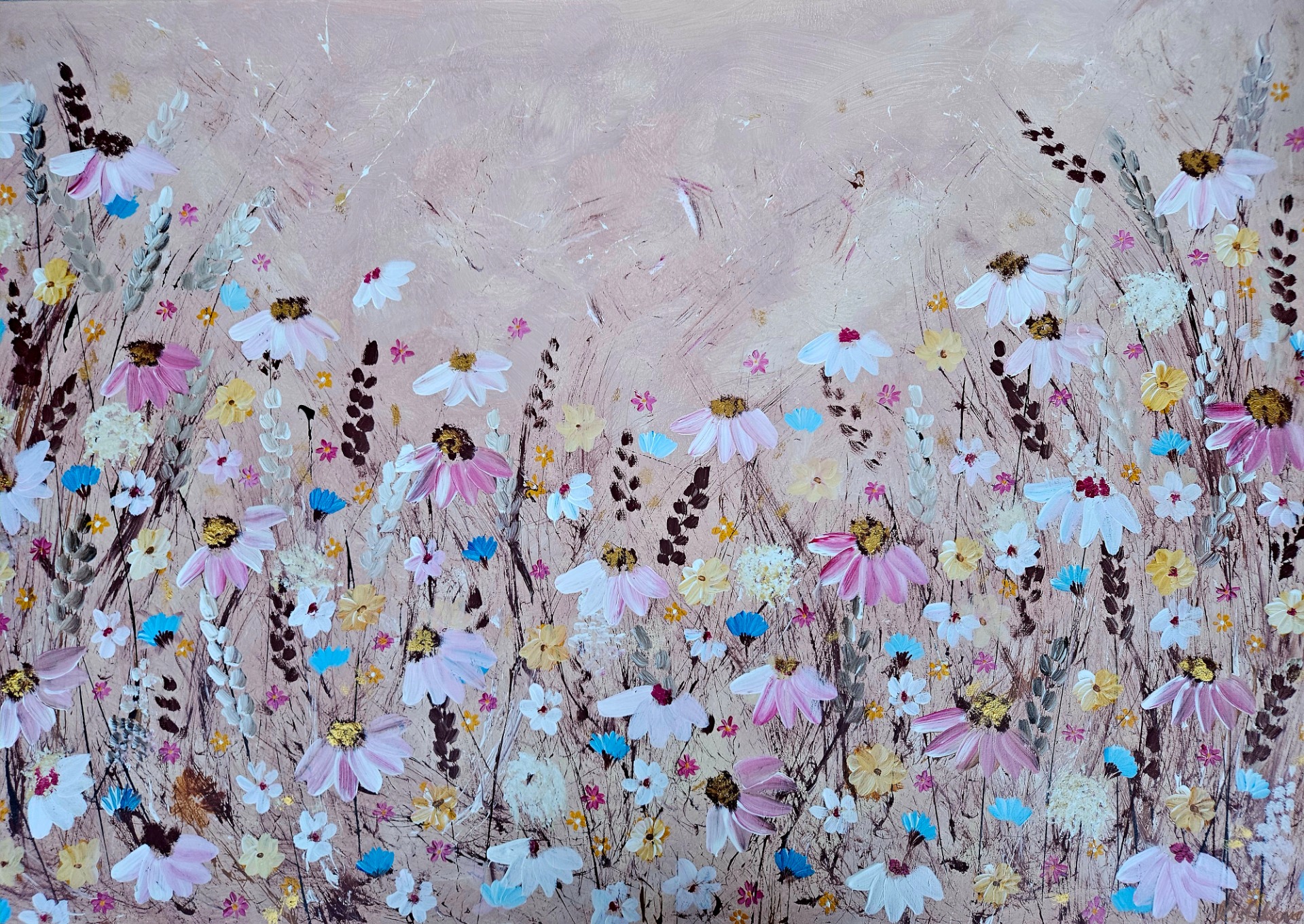 divoká lúka - béžová/ružová
